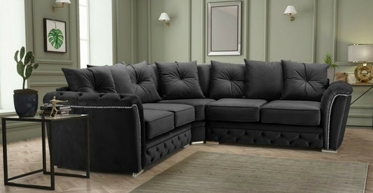 Large Verona Black Suede Fabric Corner Sofa The Verona Corner Sofa is one of our most popular and most desired corner sofas.
