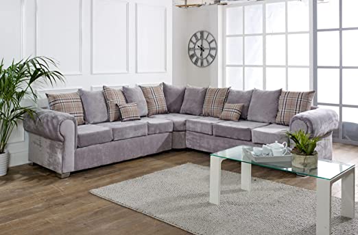 Blue & Grey Plush Fabric Corner Sofa Buy our new Large Fabric Sofa at an affordable price in the UK.