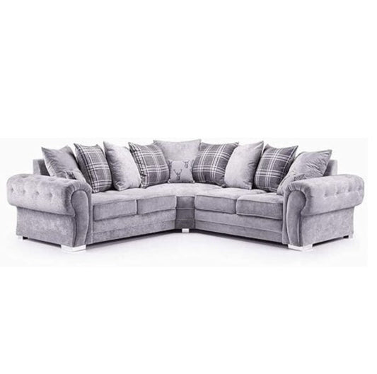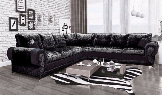Black and Silver Crushed Velvet 7 Seater Corner Sofa The soft, crushed velvet is both comfortable and stylish.