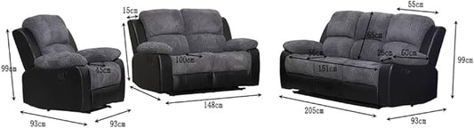 Rio Recliner Black and Grey Jumbo Cord Sofas Luxury Rio Recliner Jumbo Cord Black and Grey Fabric Sofa