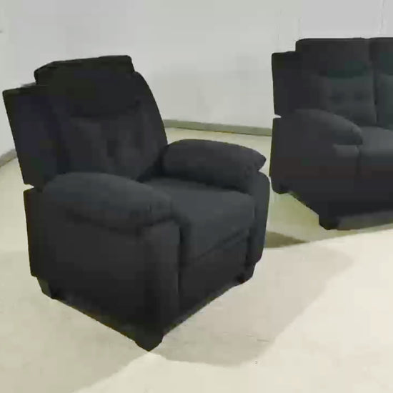 • Stationary Black Fabric provides a luxurious seating experience that invites you to unwind and relax in style.